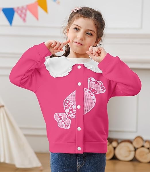 RIBCAGE STR ANK RAINBOW - Toddler girl ruffled collar jacket, made of 95% polyester and 5% spandex material; Soft and cozy, providing warmth and comfort during colder months.