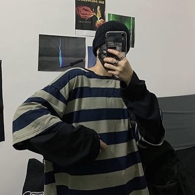 This gothic pullover is designed with a round neck, stripes, long sleeves, fake two-piece design, casual loose, urban style, hip-hop style, fashionable style, unisex top, suitable for men and women.