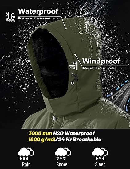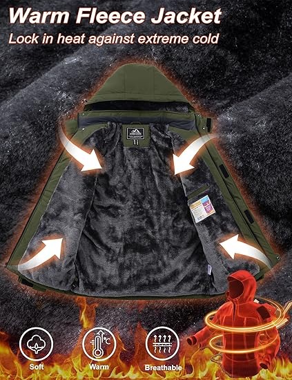 This winter coats with fuzzy lining and softshell fabric provide the best heat retention, keep you warm and comfortable during the cold winter to wear.