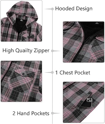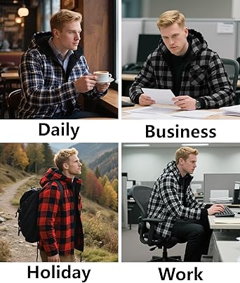 Men's fleece flannel jacket made premium polyester yarn dyed flannel fleece fabric, soft, skin-friendly and comfortable, keep you cozy all day. Our men flannel hooded jacket are durable and practical, keep you warm in cold Winter