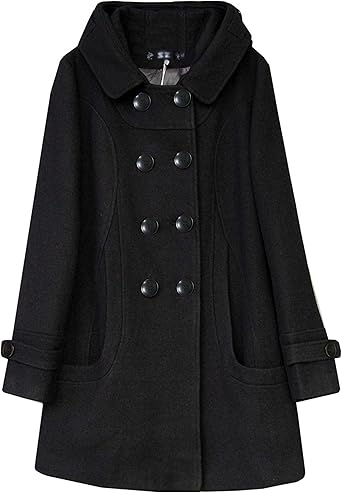 Button closureTwo hand pockets, above knee lengthUndetachable hood, solid color, soft and comfortableTrendy elegant long sleeve black brown green dress coat wool coat jackets for women
