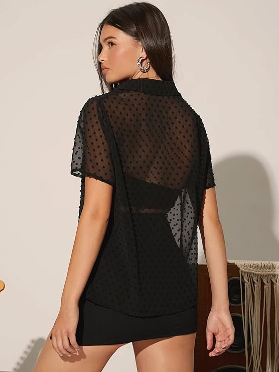 Introducing our Women's Oversized Semi-Sheer Swiss Dot Shirt – the epitome of chic and comfort. This airy delight boasts a delicate Swiss dot pattern, adding a touch of elegance to any outfit. Designed with a relaxed, oversized fit, it offers breathability and style in one. Ideal for both casual and formal occasions, this semi-sheer shirt is a versatile wardrobe staple. Elevate your fashion game with the perfect blend of sophistication and ease. Available in a range of colors to suit your individual style.