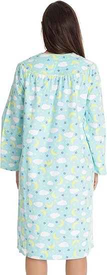 Dreamcrest Women’s Snap-Front House Coat Flannel Duster Robe with Pockets