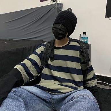 This gothic pullover is designed with a round neck, stripes, long sleeves, fake two-piece design, casual loose, urban style, hip-hop style, fashionable style, unisex top, suitable for men and women.