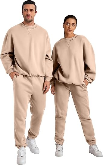 Crafted from a polyester fabric, this tracksuit set keeps you comfortably warm during workouts or casual wear, featuring a crew neck sweatshirt and drawstring jogger sweatpants for a relaxed, sporty look