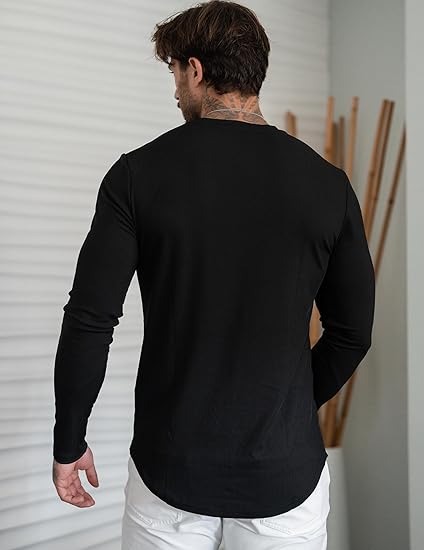 Unique v-neck long sleeve t-shirts in solid colors, perfect for sports, work, vacations, and casual occasions. Essential for your spring and fall wardrobe