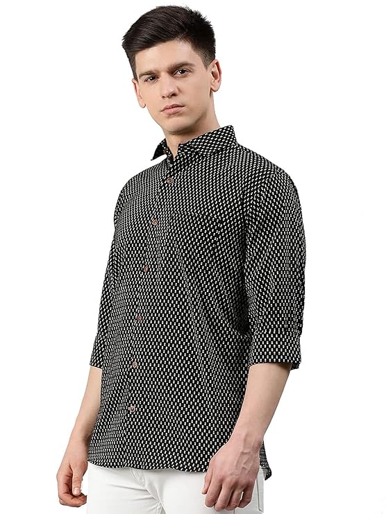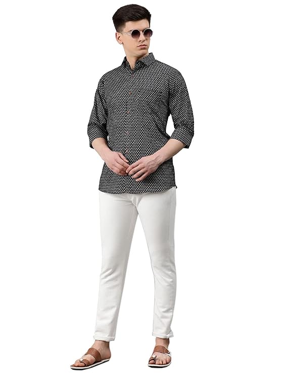 Upgrade your style statement with wide range of casual black shirts for MILLENNIAL MEN. Light fitted and breathable, weaved 100% cotton it is crafted with unique designs and ethnic block prints. This comfort fit shirts are suitable for formal and informal gatherings, it has classic collar contemporary fit, full sleeves. Team it up with your favorite denims or pants to complete for look. Comfort fit, 100% cotton, printed, Made in India, easy wash.