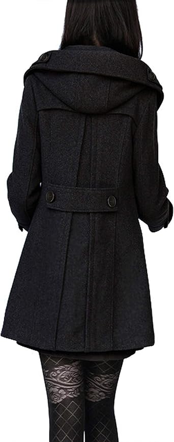 Button closureTwo hand pockets, above knee lengthUndetachable hood, solid color, soft and comfortableTrendy elegant long sleeve black brown green dress coat wool coat jackets for women