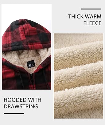 This Men Plaid Flannel hoodies shell is made of high-quality polyester fabric;Thick fleece lining, including sleeves, keeps you warm in the cold winter